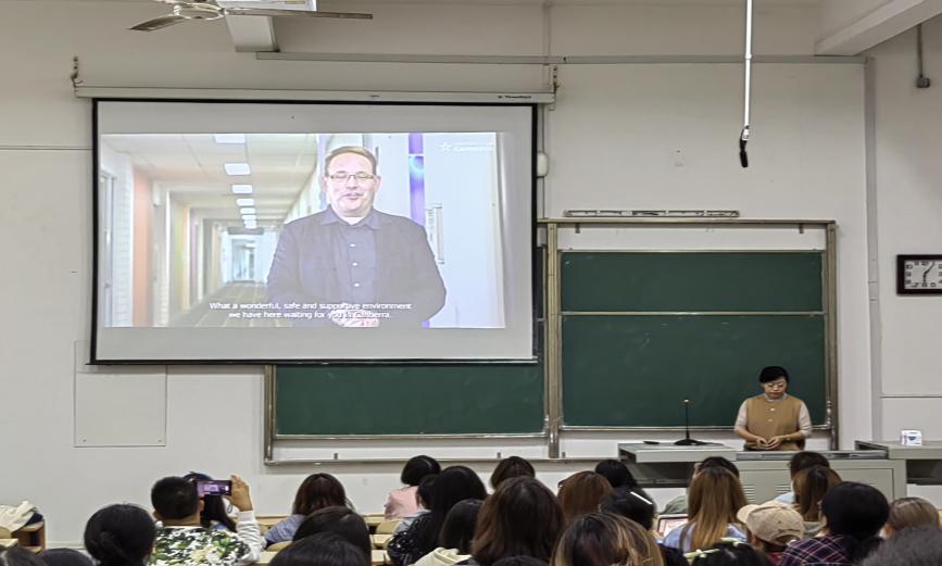 会上,谢丹老师通过视频播放了堪培拉大学Art and Design公司经理Jason Bainbridge教授向新生们的问候。Jason Bainbridge教授简单介绍了堪培拉大学,并热情欢迎大家进入项目学习。接着,谢丹老师分别从专业办学发展历程、专业培养方案、专业课程内容设置、项目的优势等方面向新生详细介绍了国际事务与国际关系(中外合作办学)专业。随后通过一段长达15分钟的视频,历届学长学姐分享了自己在402永利集团和堪培拉大学以及在研究生学习中的感受。为让专业员工更好地了解专业背景、明确未来发展方向、提高专业素养、做好职业规划提供了借鉴。