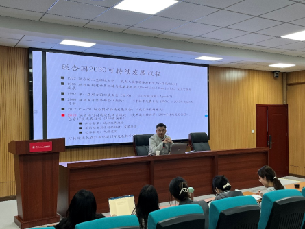 在讲座中,赵海主任首先介绍了“联合国2030可持续发展议程”的由来与联合国《2019年全球可持续发展报告》的主要内容,并对报告中提出的加强人类福祉和能力、转向可持续和公正的经济体、建立可持续的粮食系统和健康营养模式、实现能源脱碳并普及能源、促进城市和近郊的可持续发展、维护全球环境公域6个关键“切入点”进行了具体说明。随后,赵主任结合西方政治思想界的流变阐释了当前全球治理所面临的现实问题,他认为霸权主义、竞争对抗、零和博弈、单边主义等负面因素的影响是导致当下全球可持续发展目标难以实现的原因之一,并通过图表数据具体说明了当下全球发展不平衡、代际流动不平等等问题。最后,赵主任探讨了当前中美战略博弈所带来的全球治理和可持续发展难题,以及未来中国和世界可持续发展的前景。在随后的互动环节,多位同学结合自己在课程中所学到的知识和当下国际关系的热点问题赵研究员进行了踊跃提问,现场气氛热烈,讲座取得了良好效果。