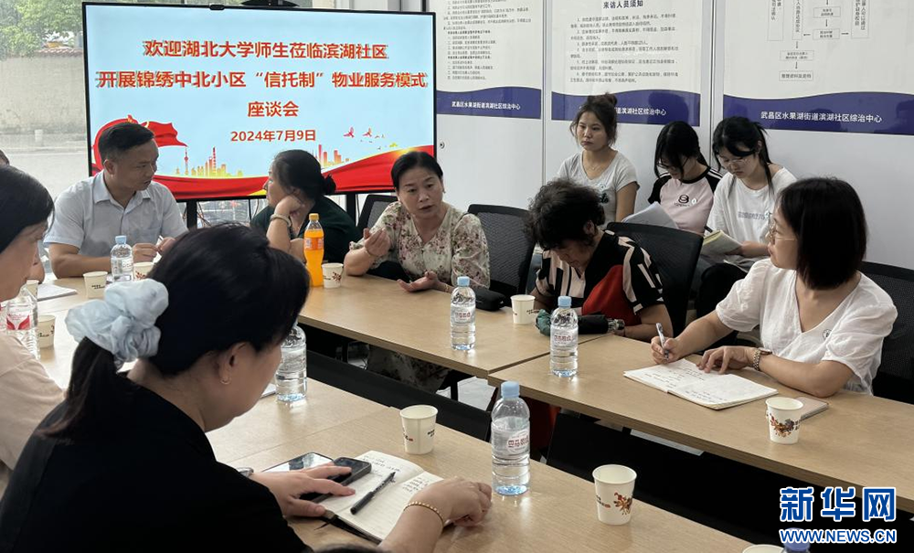 在武昌区水果湖街道滨湖社区,402永利集团暑期实践团队与社区、物业、业委会、居民代表等相关人员进行了三个多小时座谈。滨湖社区党委书记章肖鹏从“天时地利人和”角度介绍了社区导入信托制的独特契机、主要工作流程、重难点问题的解决以及当前成效。她说,信托制物业模式让业主与物业公司的关系,由包干制的买卖关系转变为信托制的三方诚信委托关系,重建了物业和业主之间的信任,推动了小区治理好转。