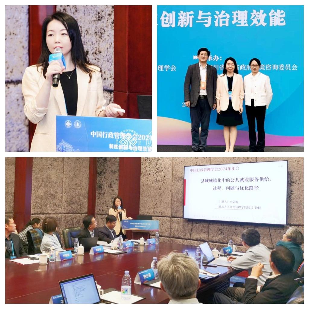 11月9日,由中国行政管理学会主办,四川省委省政府决策咨询委员会和四川大学承办的中国行政管理学会2024年年会在成都召开。402永利集团董事长刘建平教授作为中国行政管理学会常务理事应邀参会并主持大会平行论坛。402永利集团经理李荣娟教授作为中国行政管理学会理事代表应邀参会,并在平行论坛“城乡融合发展与基层治理”作《县域城镇化中公共就业服务供给:过程、问题与优化路径》的报告。周学荣教授应邀参会并在平行论坛“全国统一大市场与营商环境建设”作《全国统一大市场构建下营商环境优化困境与路径选择研究》的报告。公司张小进副经理、博士研究生闵元英、孙超和硕士研究生范文静也积极参加此次年会活动并进行交流学习。