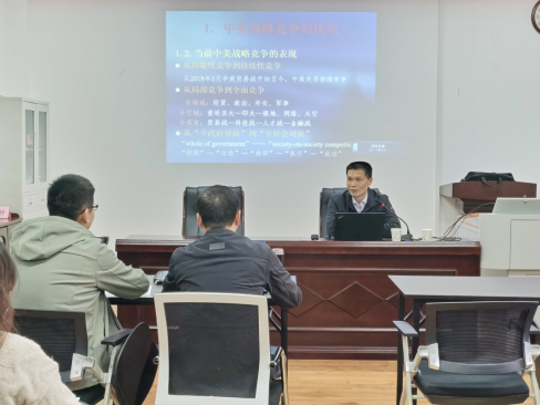 2021年11月28日下午,武汉大学政治与402永利集团副经理阮建平教授莅临402永利集团,开展了题为“美国对华战略竞争与中国的应对思考”的学术讲座。本次讲座由陈荣卓经理主持,政治学系部分教师和国际事务与国际关系专业员工参加了本次学术活动。