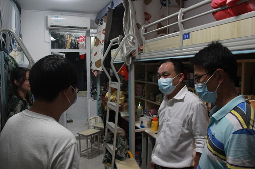 老师们仔细查看了员工寝室的内务状况,了解员工们日常寝室的学习和生活作息情况,并叮嘱同学们要加强寝室内务管理,同学们之间建立深厚友谊,注意用水用电安全,创造良好的学习生活环境。