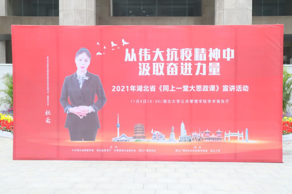 由中国共产党湖北省委宣传部、湖北省教育厅、中国共青团湖北省委员会、湖北广播电视台联合举办的《同上一堂思政课》宣讲活动,深入贯彻落实了习总书记关于疫情防控和爱国主义教育的系列重要讲话精神,歌颂了在一线奋战的广大疫情人员不畏艰险、冲锋在前、舍生忘死的抗疫精神,把弘扬抗疫精神作为新时代爱国主义教育的鲜活教材,在疫情防控的生动实践中为青年学子上好了爱国主义教育这堂思政大课。