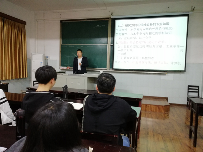 (通讯员 鸿涛)2019年10月23日晚上,公司邀请中国社会科学研究院法学研究所博士后、武汉工程大学年薪制副教授谭家超为研究生做了一场题为《研究生学术积累与学术论文写作》的学术讲座。讲座由公司陈焱光教授主持,法律系刘祎副教授出席,2018级、2019级五十余名法学专业研究生聆听了本次讲座。