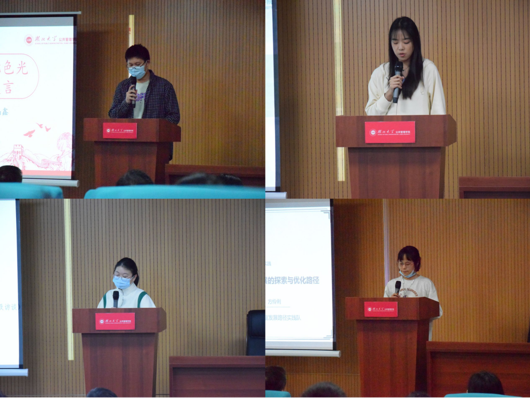 大会从观看七色光支教队暑期支教短片开始,回顾队员们暑期在随州市广水骆店镇中心小学支教的精彩瞬间和生活剪影。随后,与会同学踊跃发言,分享心得感悟。七色光支教队队员邱晶鑫同学深情回忆支教生活,他表示,孩子们的欢声笑语仍时时在他的耳畔回响,支教生活的点点滴滴将成为他难以忘怀的美好记忆;彭紫怡、王思捷同学所参与的暑期社会实践团队荣获校级优秀实践团队、吴采薇同学所参与撰写的暑期社会实践调研报告荣获校级优秀调研报告,他们从选题拟定、团队组建、实践宣传、论文写作等方面,与同学们分享经验和感悟。
